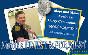"Make Norfolk's Furriest, Most Wanted! Norfolk Police understands that they also serve and protect the animal community those who serve us unconditionally. A week after the initial launch of the partnership, all of the animals featured with officers were adopted.