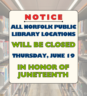 All Norfolk Public Library locations will be closed Thursday, June 19 in honor of Juneteenth.