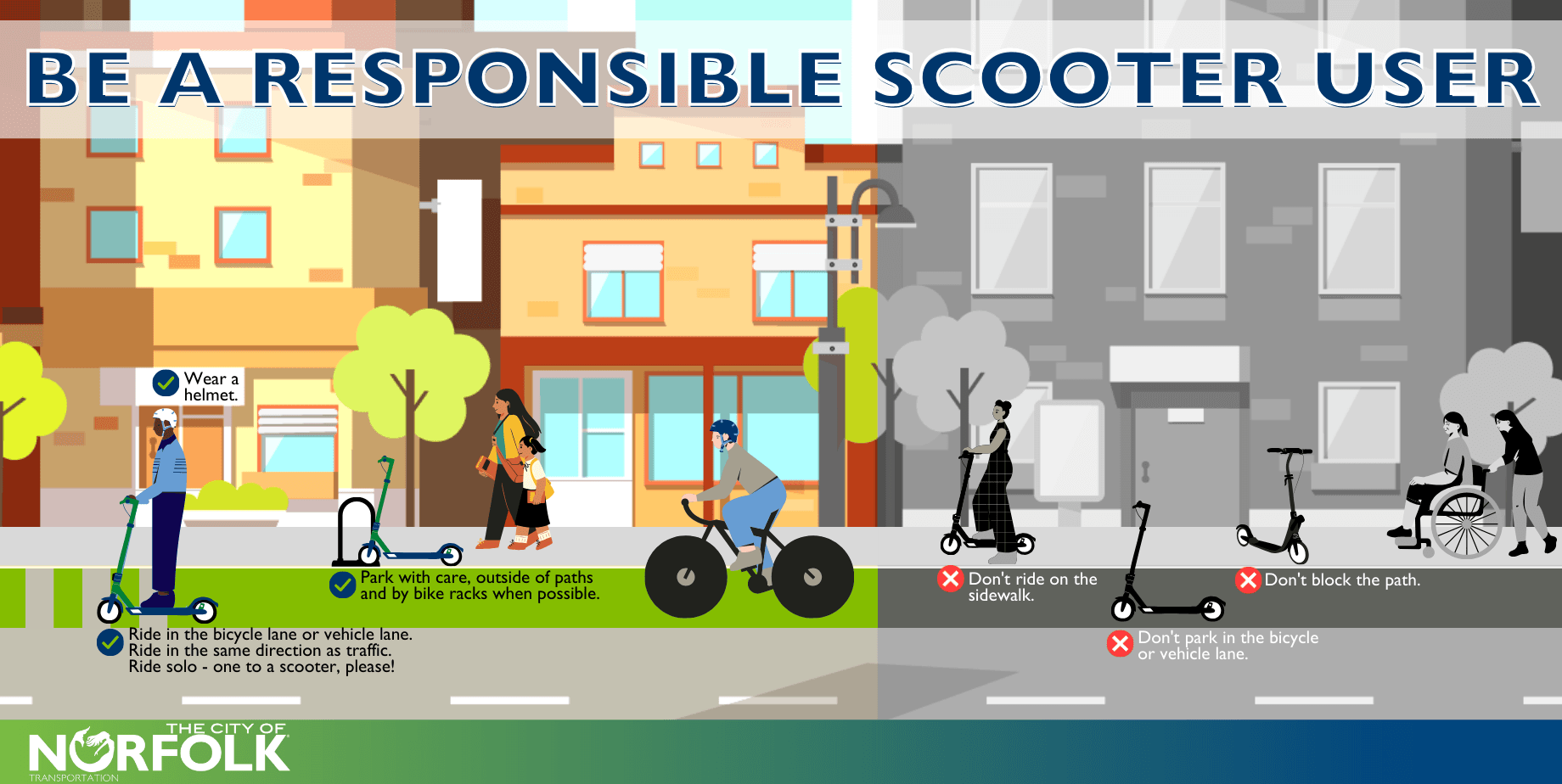 Please scoot responsibly, park with care, and remember to slow down, stay alert, & share the road.