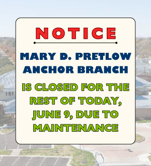 The Mary D. Pretlow Anchor Branch will be closed today, June 9, due to maintenance.
