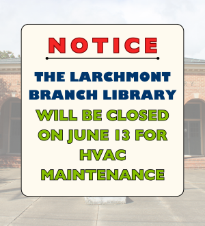 The Larchmont Branch will be closed on June 13 due to HVAC maintenance.
